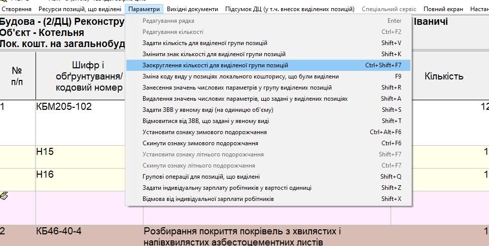 8. У екранній формі локального кошторису додано можливість встановлювати або скасовувати раніше задане заокруглення для значення кількості виділеної групи позицій.